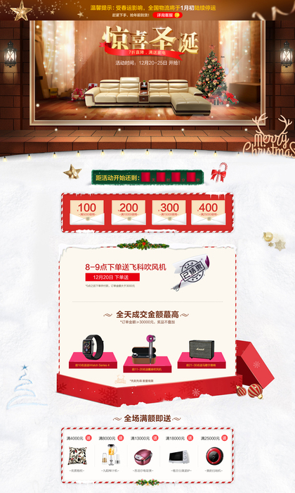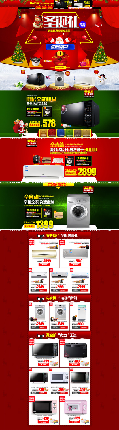 圣诞礼 圣诞节日专题 1元购优惠 psd素材 年底清仓甩货 格兰仕家电电器 空调 微波炉 洗衣机