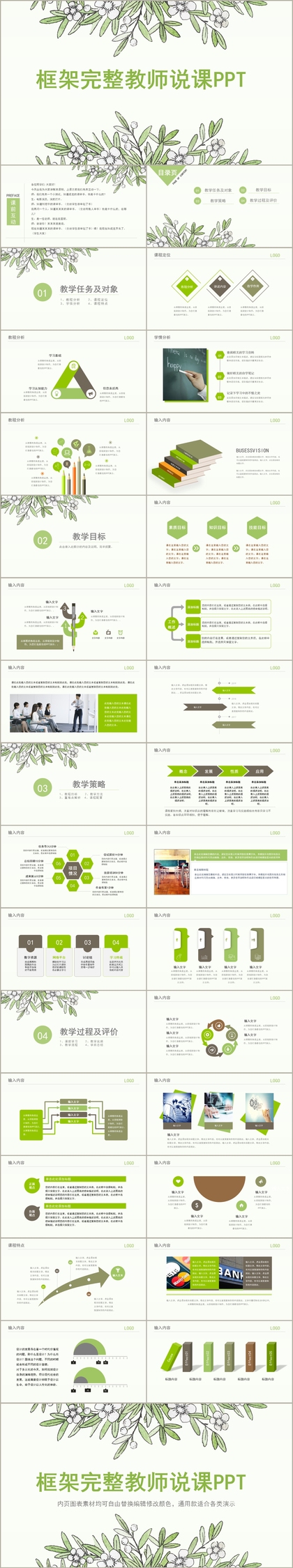 创新时尚绿色小清新教师教育教学公开说课PPT模板