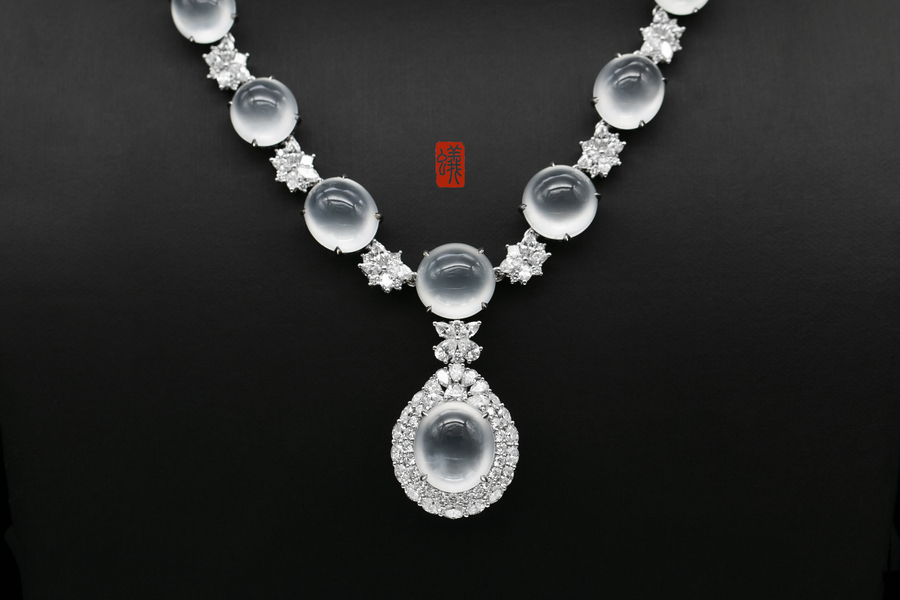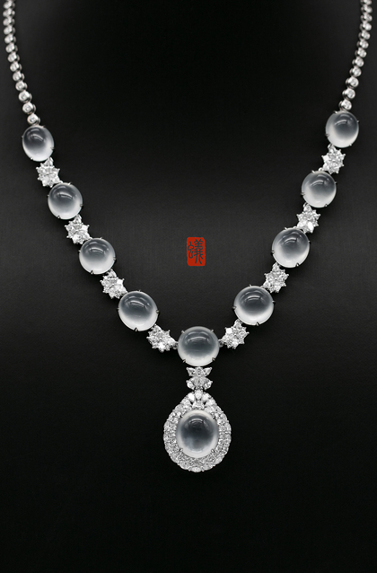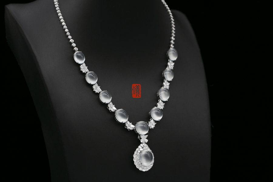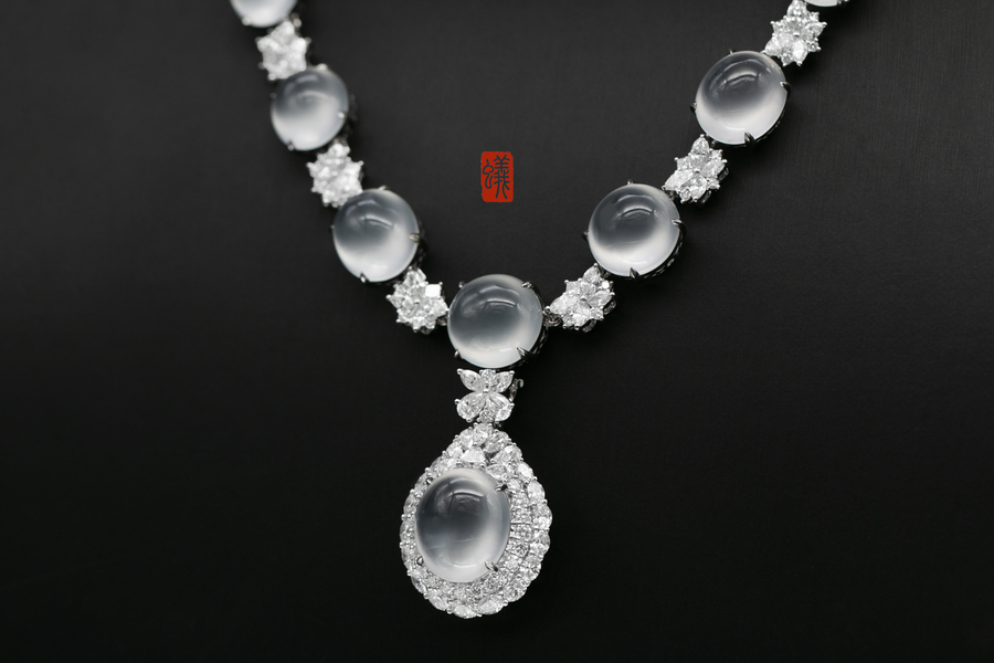 蚂蚁珠宝·个人吊坠| 18K金镶嵌翡翠蛋面&钻石晚装链