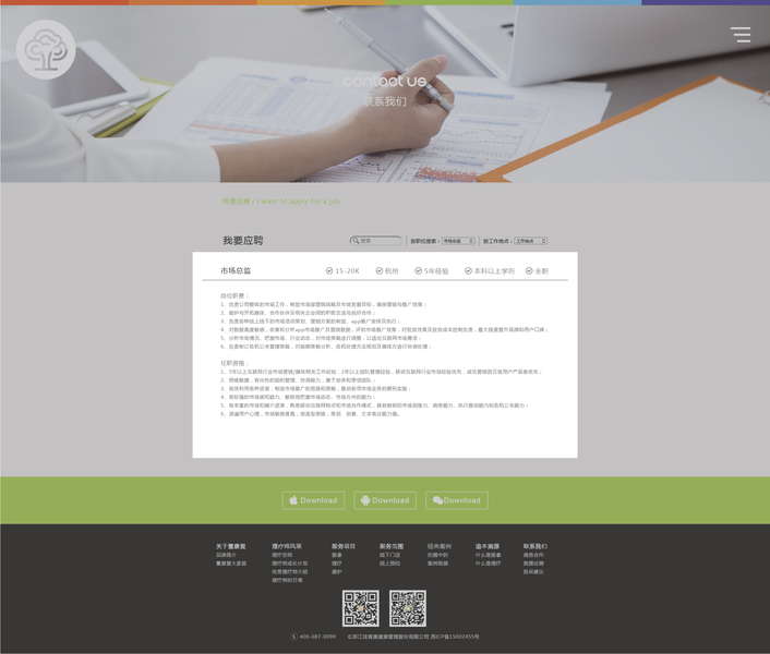 网页,瀑布流响应式,扁平化简约风格,全屏满屏宣传下载页面及合作中心