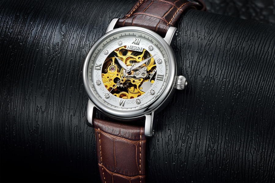 手表摄影/NESUN尼尚双面镂空精钢防水自动机械男士手表