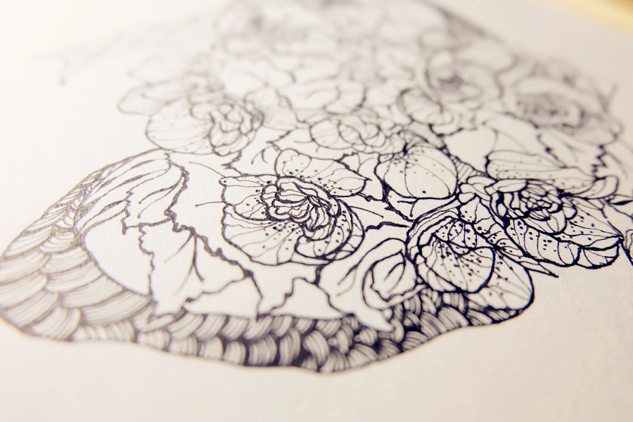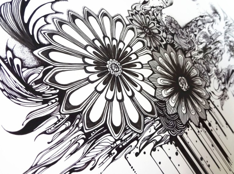 黑白装饰画|《静花幽梦》