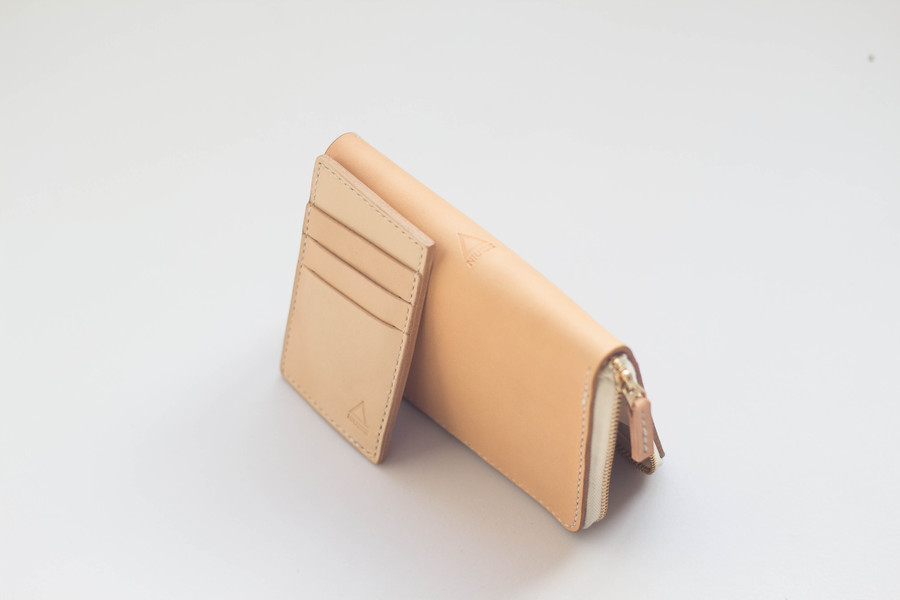 5000TIMES'手工皮具植糅牛皮三折长钱包长夹-原色
