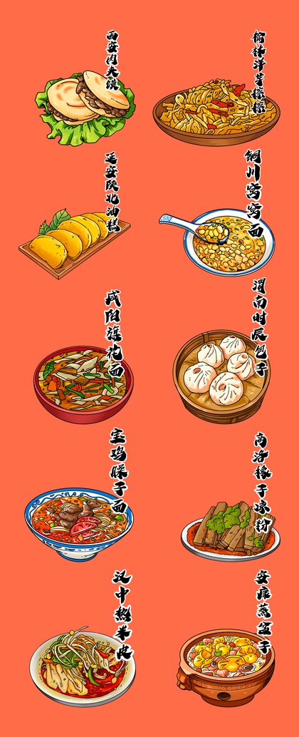 陕西美食插画手绘