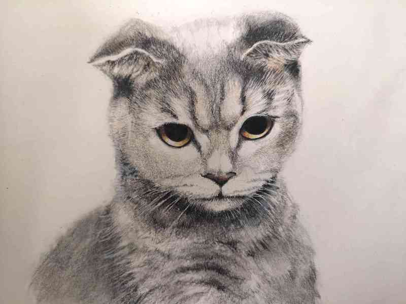 彩铅折耳大脸猫 纪念大学里陪伴我的傻脸