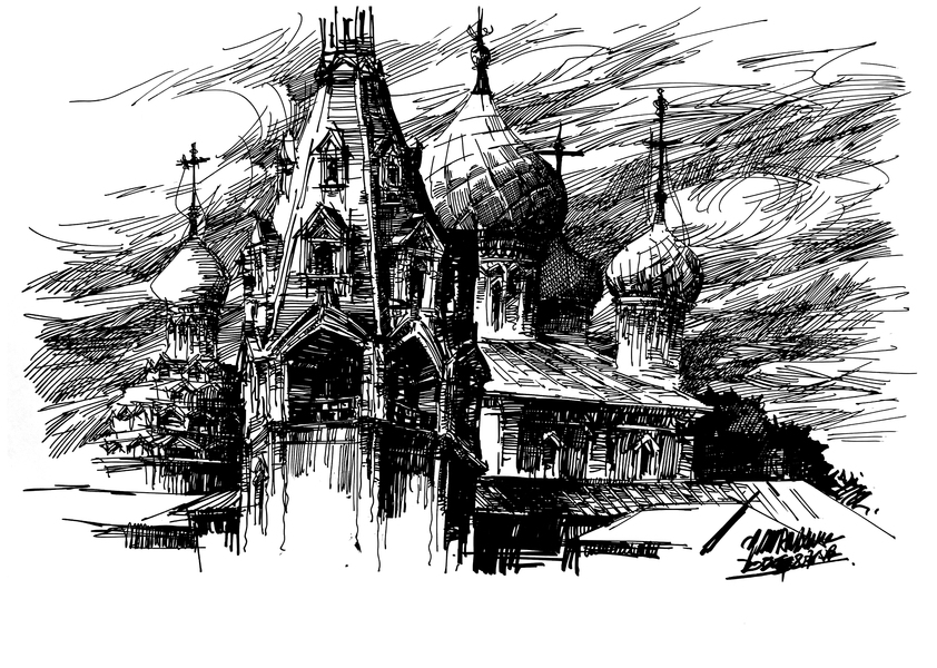 欧式建筑钢笔速写