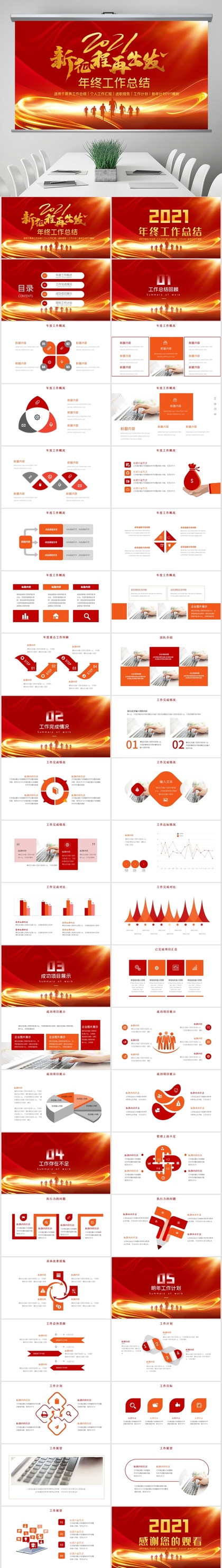 2021红色励志跨越商务大气简约工作总结计划PPT模板