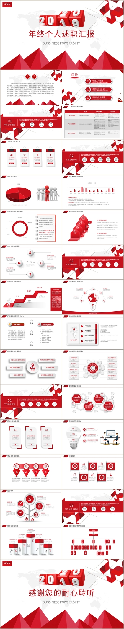 时尚简洁红色微立体公司年终总结述职报告PPT模板