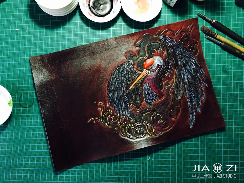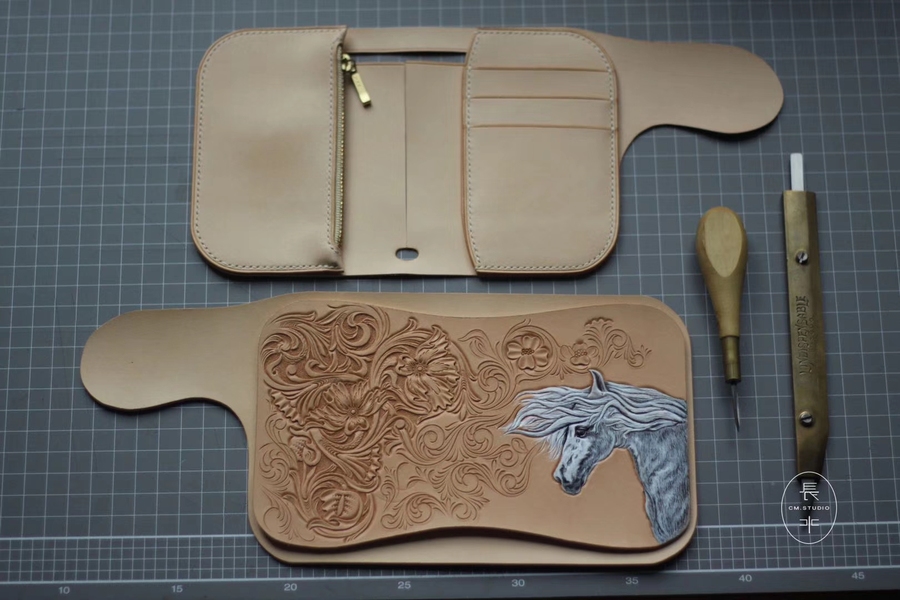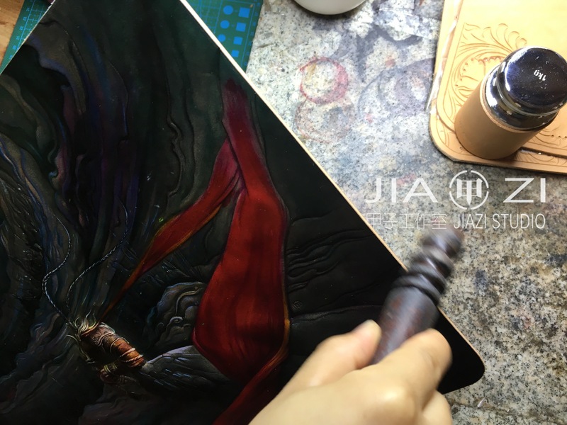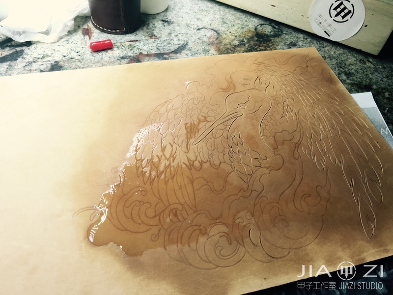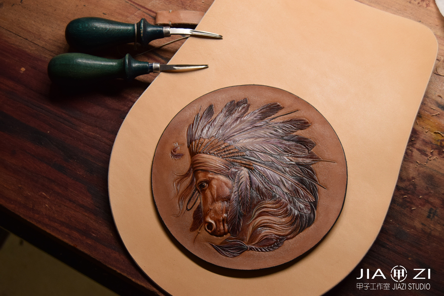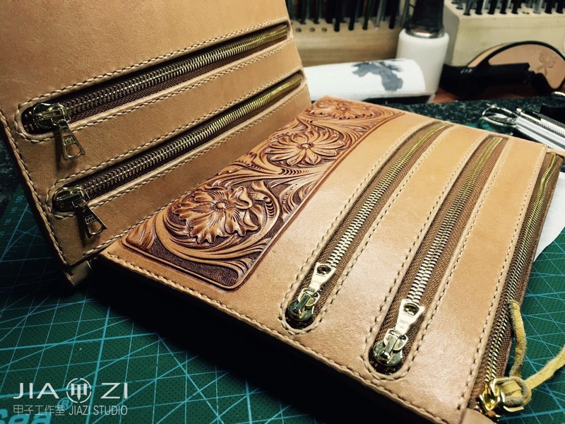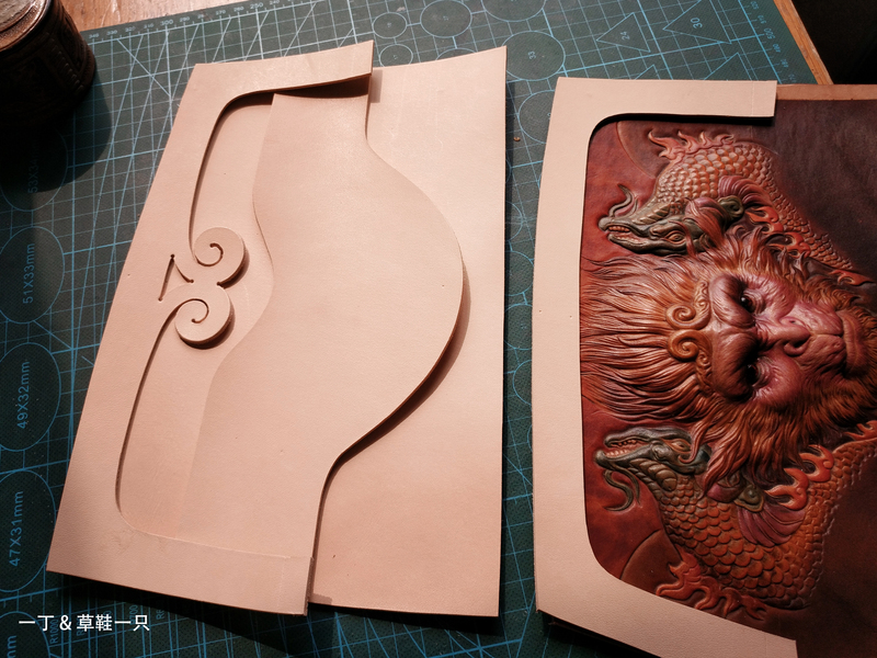 和草鞋老师合作的一款皮雕皮塑手拎包