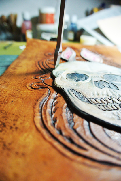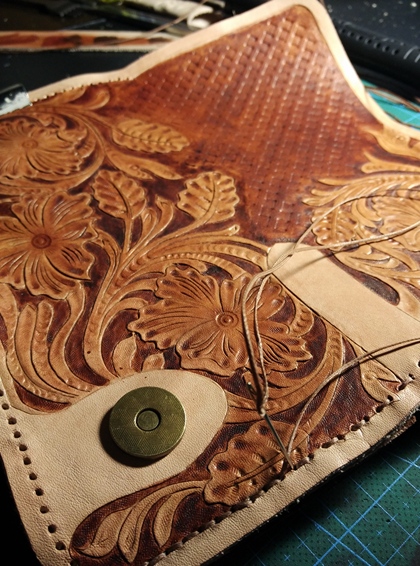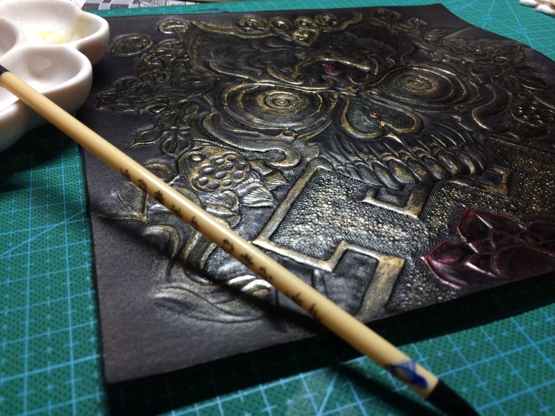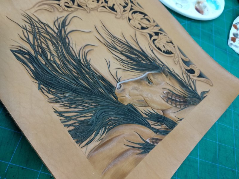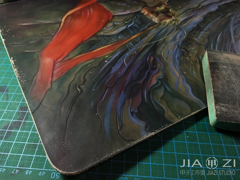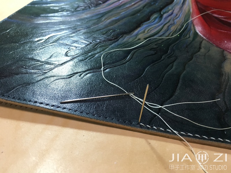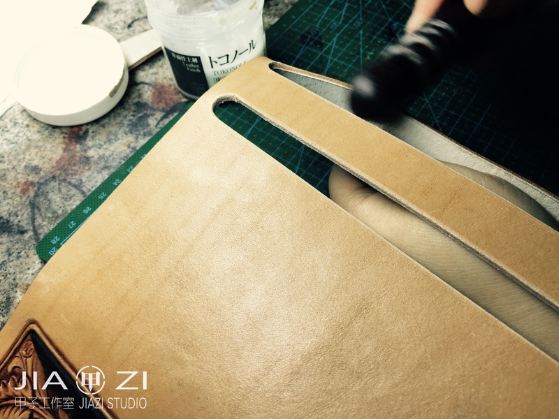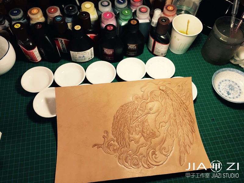 和草鞋老师合作的一款皮雕皮塑手拎包