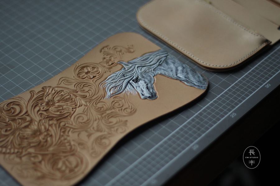 太原甲子皮雕皮艺工作室 黑豹唐草手包