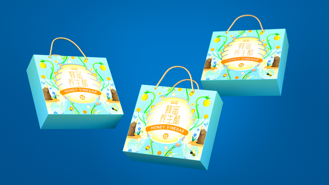 恒顺蜂蜜养生醋饮礼盒包装设计