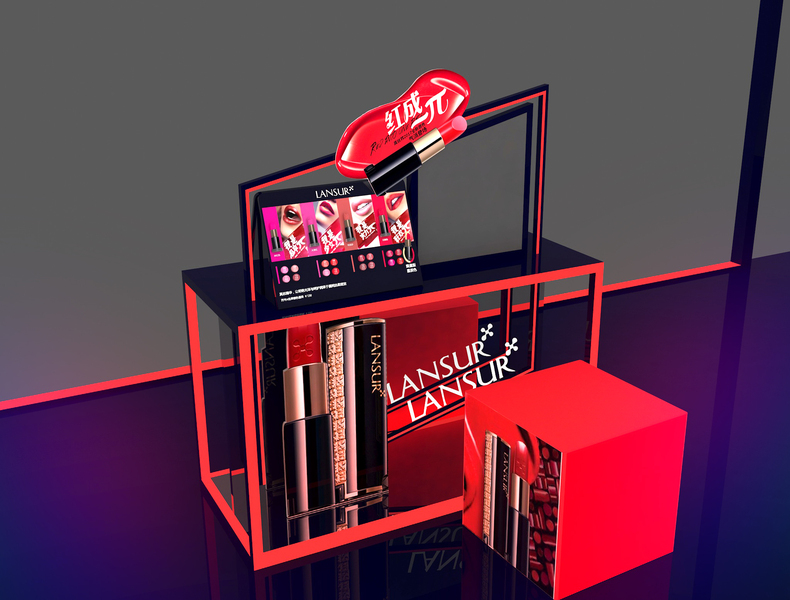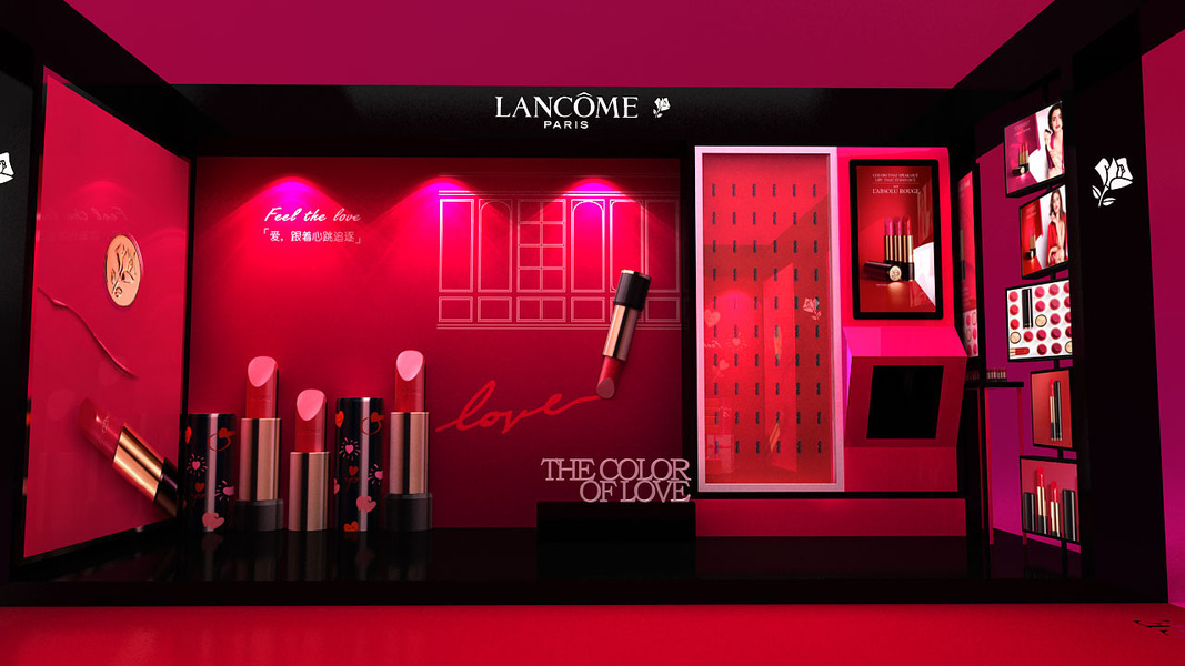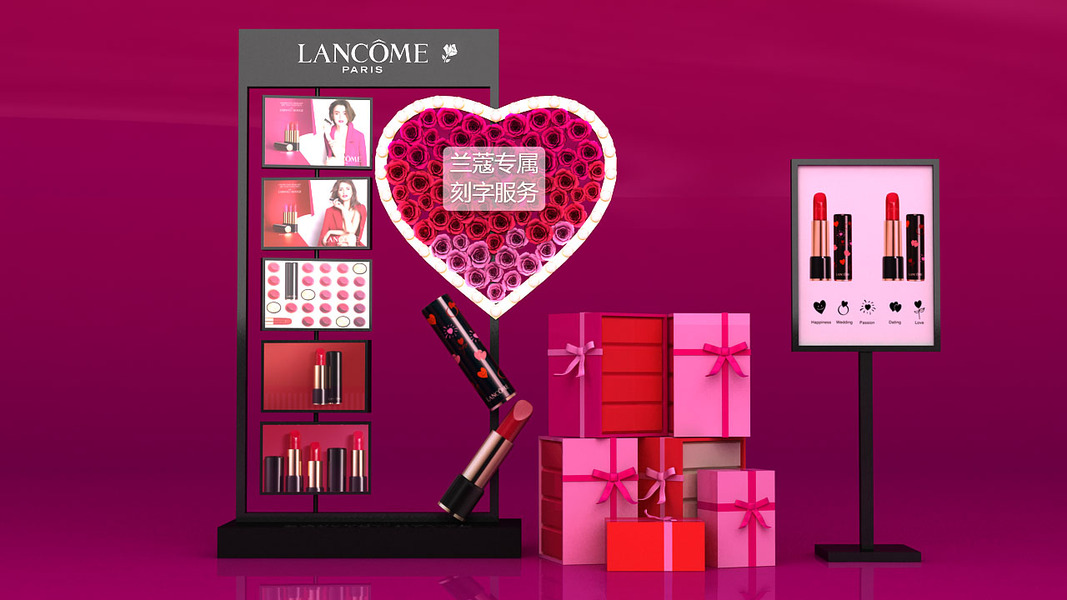 LANCOME New L'ABSOLU ROUGE 兰蔻金纯玫瑰丝缎唇膏 系列展台
