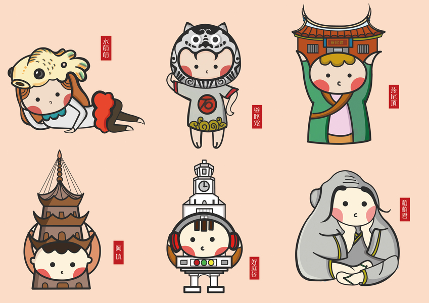 泉州闽南元素“见物”系列盲盒手办卡通形象设计概念图