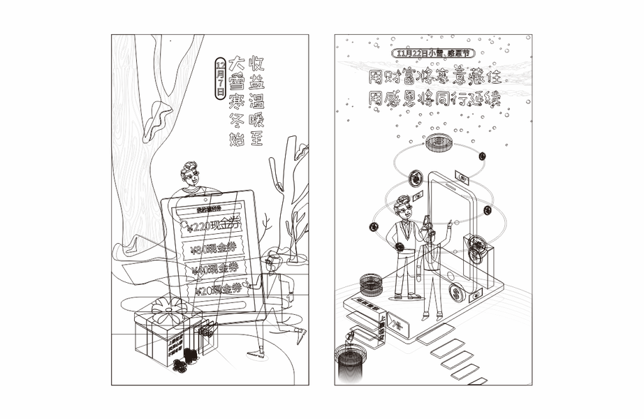 黑白线描插画