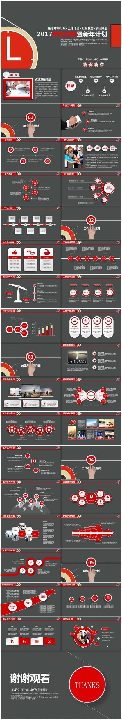 2017红黑时尚大气微立体年终工作总结PPT模板
