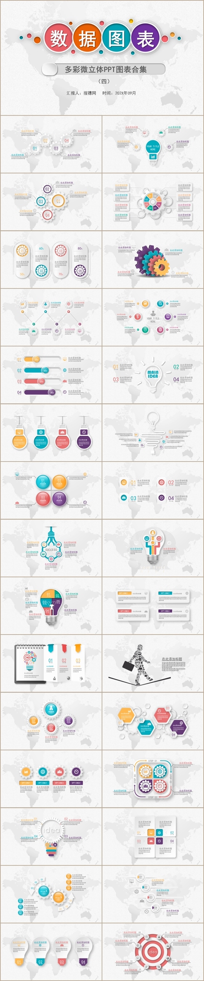 齿轮风微立体多彩设计商务通用数据关系PPT图表合集