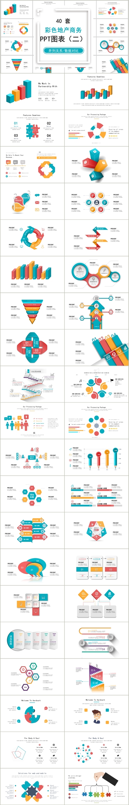 40套简洁多彩房地产企业商业办公通用PPT图表合集