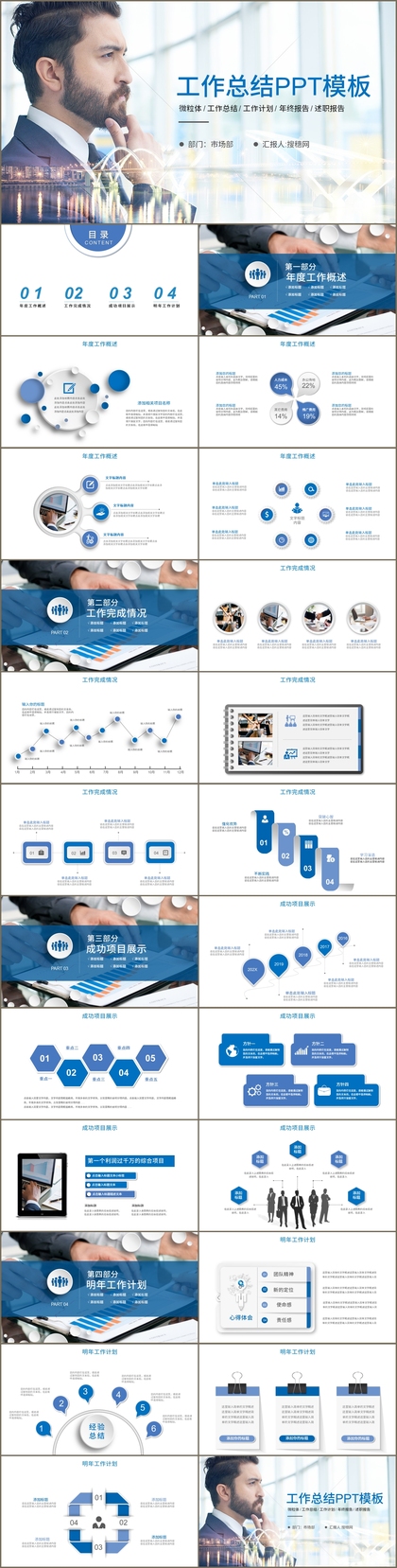 蓝色简约商务企业年终工作计划总结项目汇报PPT模板