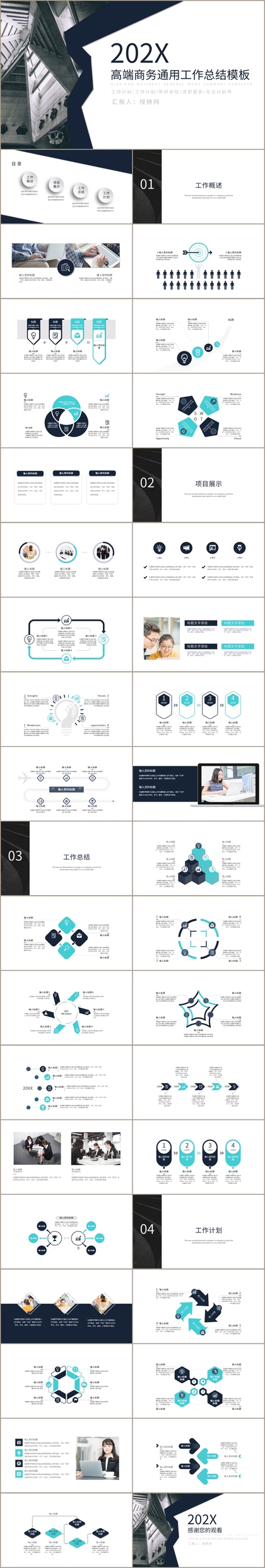 商务办公通用年度整体工作计划会议总结汇报PPT模板