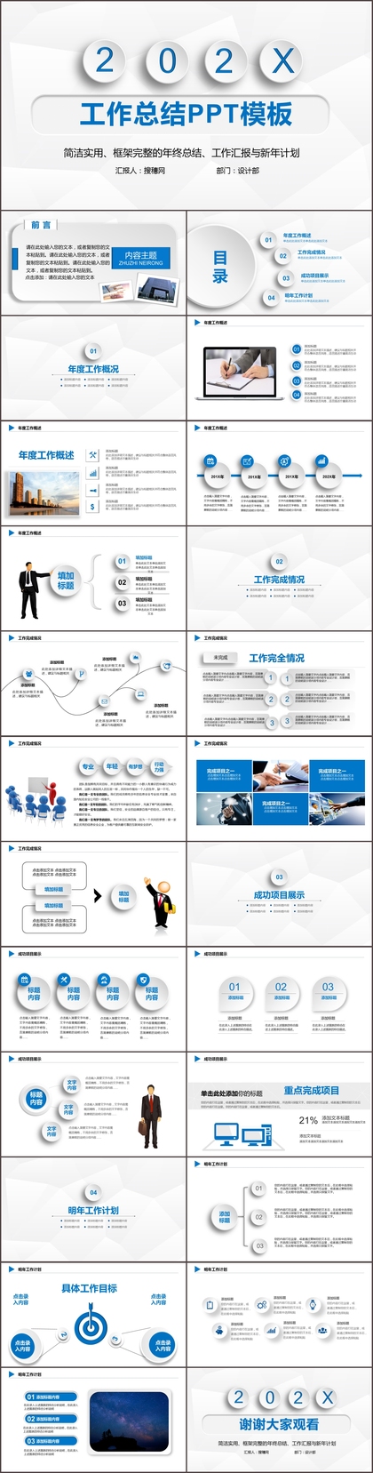 2021蓝色简约时尚大气年终总结工作汇报计划ppt模板