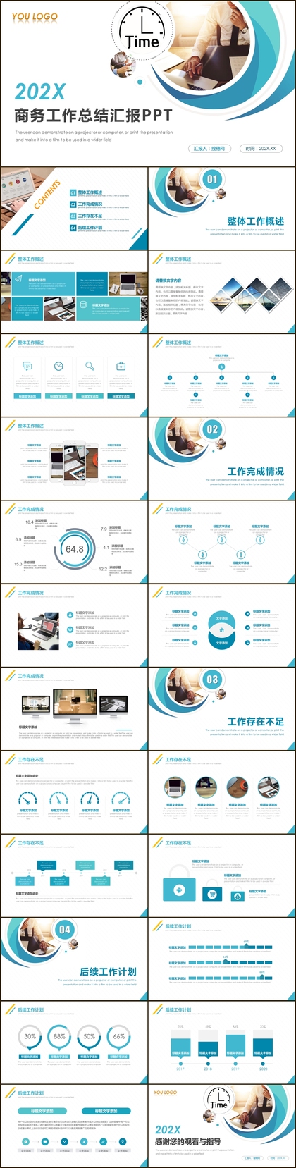 清晰完整商务通用年度工作总结计划报告PPT模板