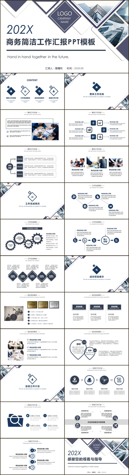 蓝色清晰简约风商务企业工作总结会议报告PPT模板