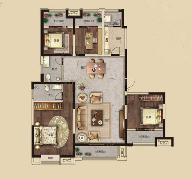 美巢装饰宏光合园装修-128平三室主卧书桌衣柜蛮合理