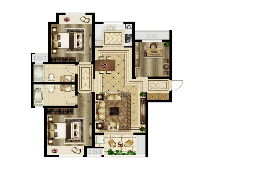 中建观湖国际洋房三室两厅装修设计效果图