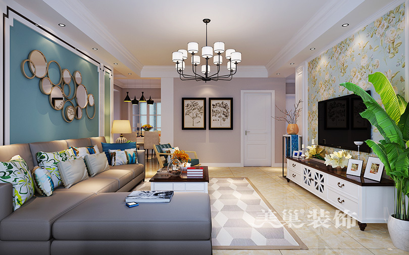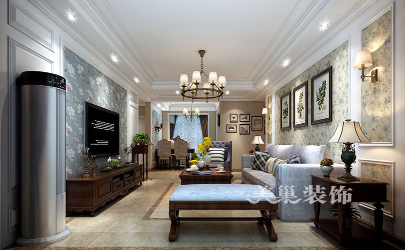 美巢郑州豫翠园138平三室两厅装修案例轻美式效果图