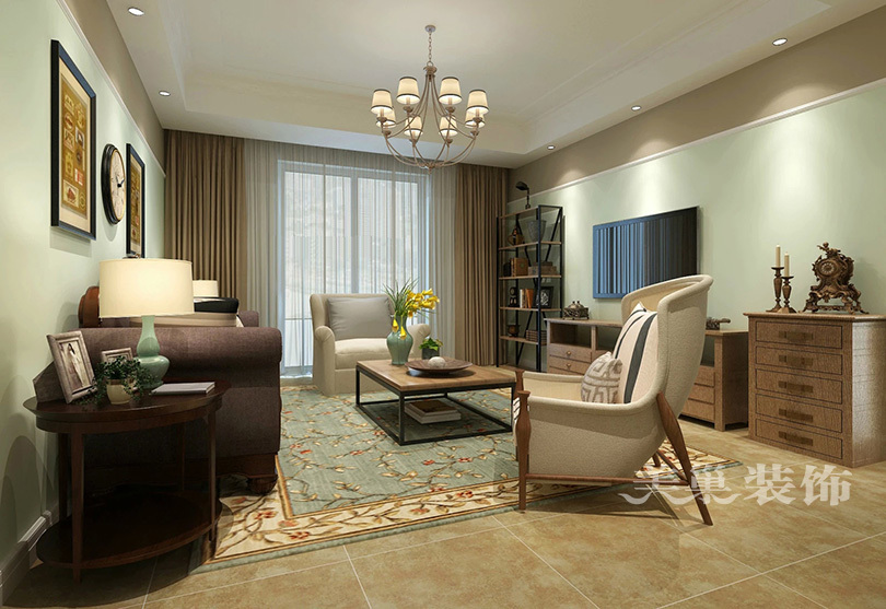 公园道1号121平三室两厅美式乡村风格装修案例欣赏
