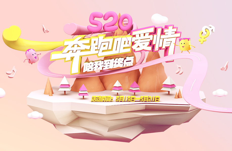 【520活动】“奔跑吧爱情”C4D专题页落地页活动页设计