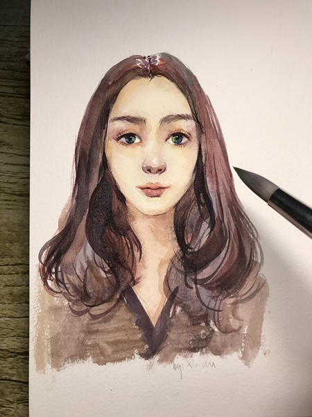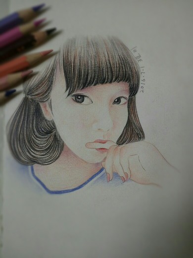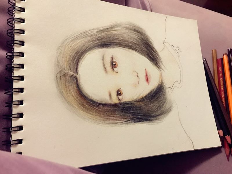 彩铅入门第二弹,不像自己的自画像(* ̄︶ ̄)