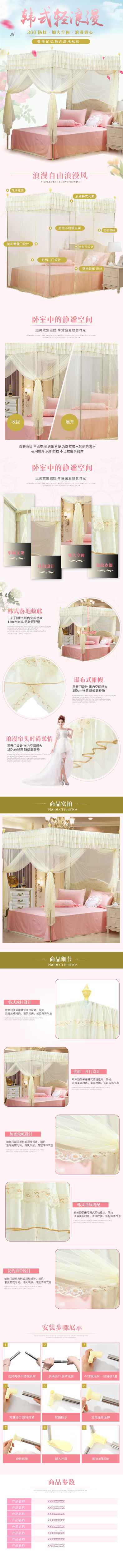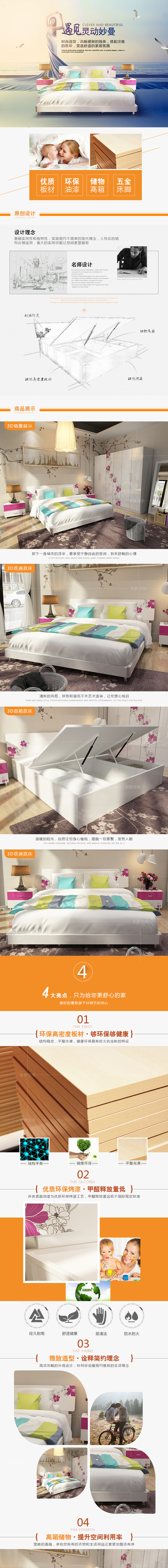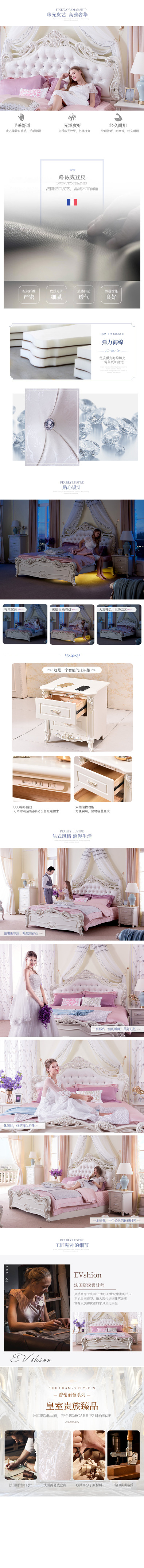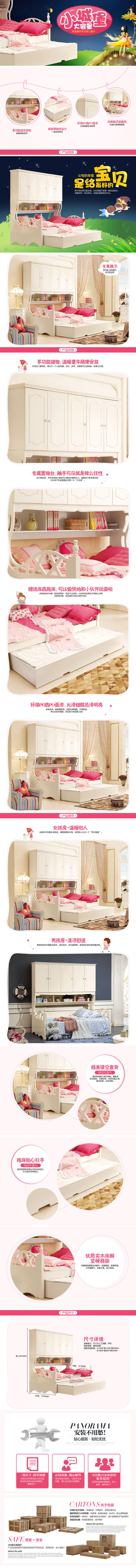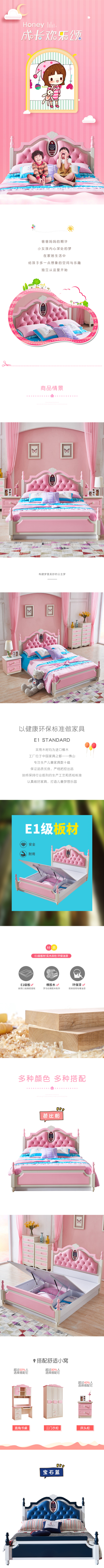 淘宝天猫粉色少女心真皮公主床实木儿童床电商详情页面
