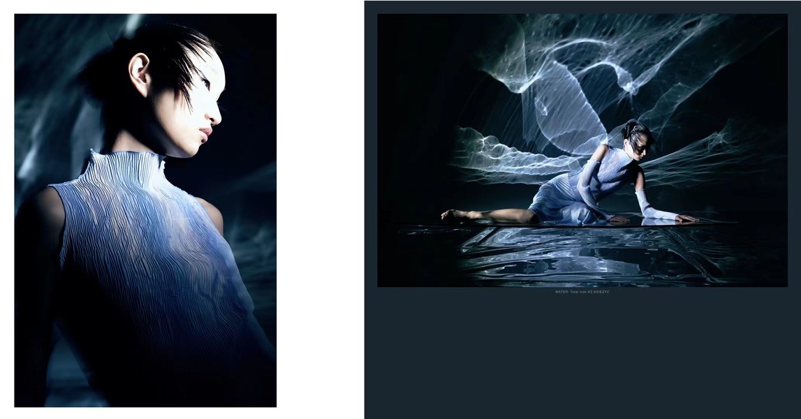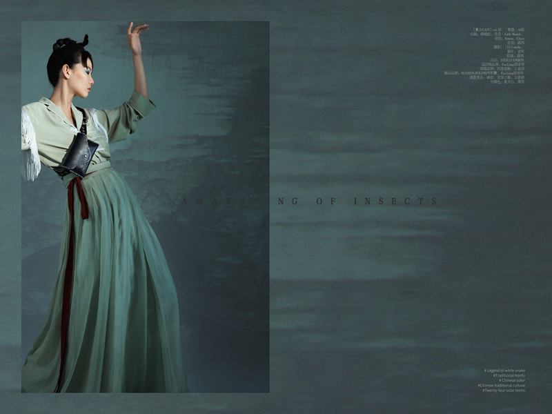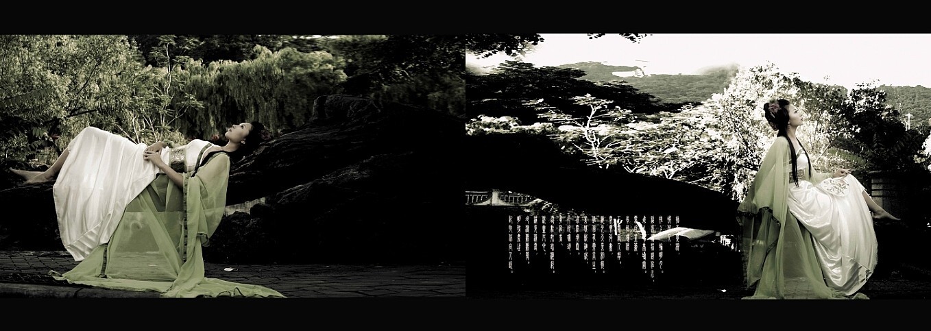 仿孙郡工笔画ps效果古典中国风水墨山水画连衣裙旗袍海报图/尤家衣店