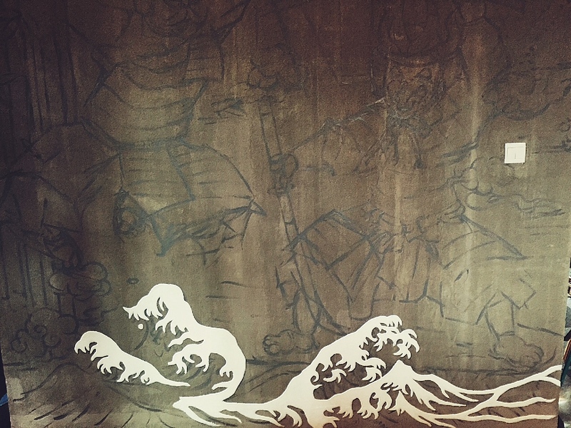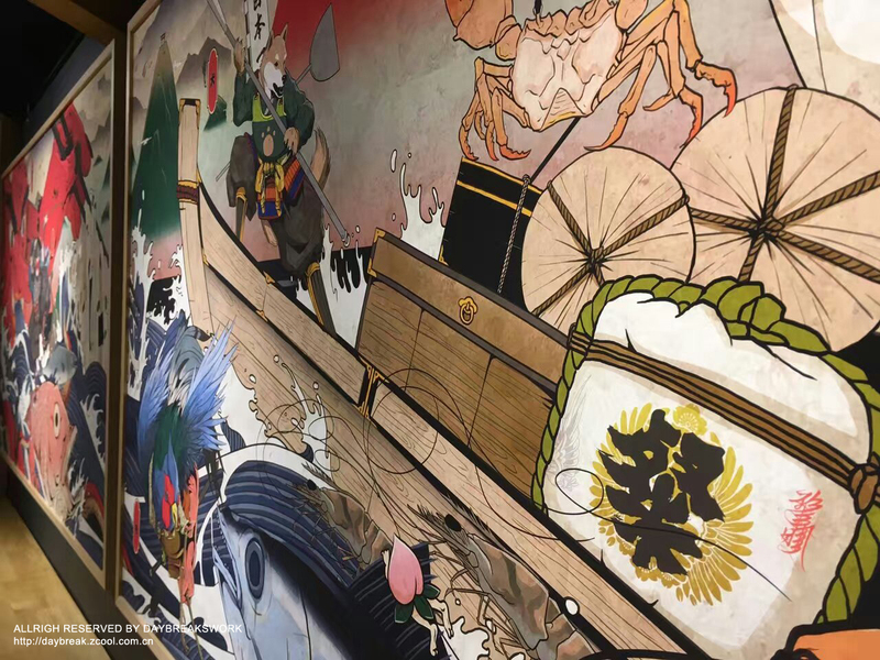 無界工作室墙绘《武士猫对战》过程图