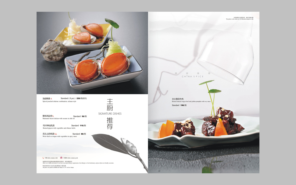 中餐菜谱制作,高档宾馆菜谱设计,铂韵锦江宾馆菜谱设计