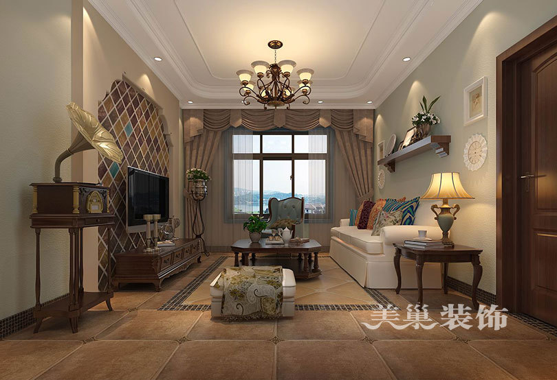 郑州绿博景苑96平两室两厅美式乡村风格装修效果图
