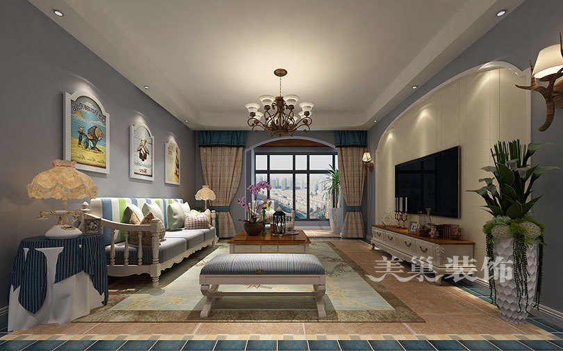 美巢郑州荣邦城154平三室洋房装修地中海风格效果图