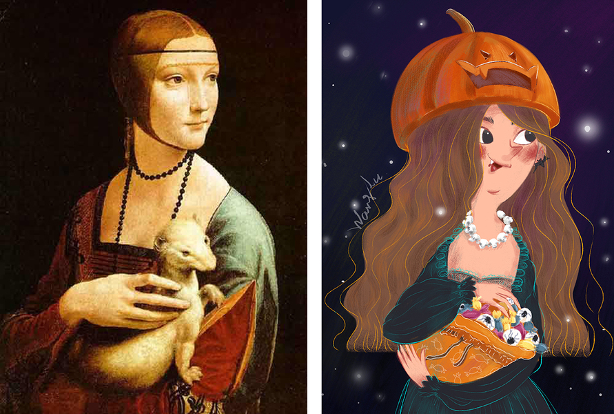 Room114集体创意之万圣节改造名画——抱银鼬的女子
