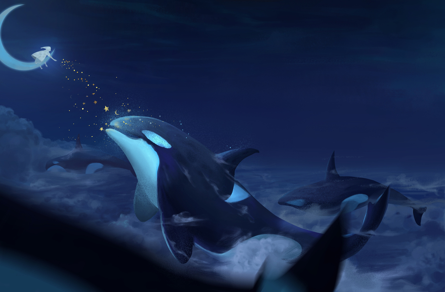 #AI创作实验室#鲸鱼,动漫风,宏伟,机械,艺术,飞鸟