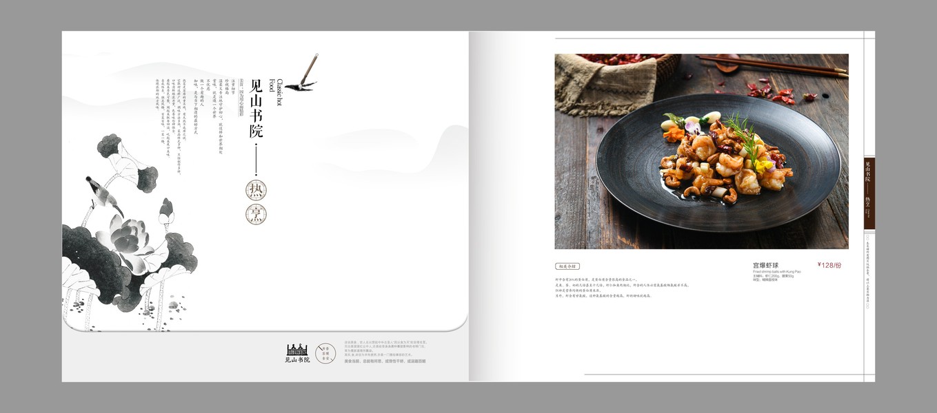 见山书院水墨风菜谱设计-餐厅菜牌定制-个性化菜单制作
