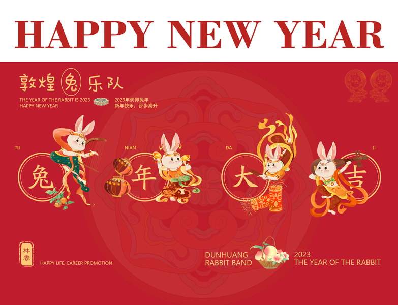 敦煌福兔乐队-2023年兔年主题插画IP形象设计