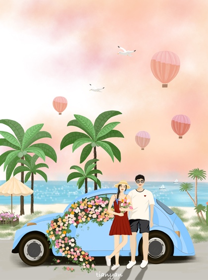 给一对小情侣画的纪念日礼物