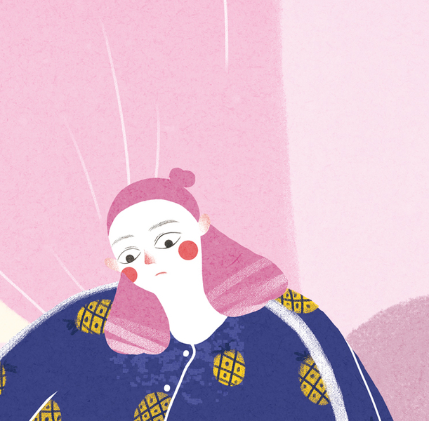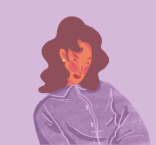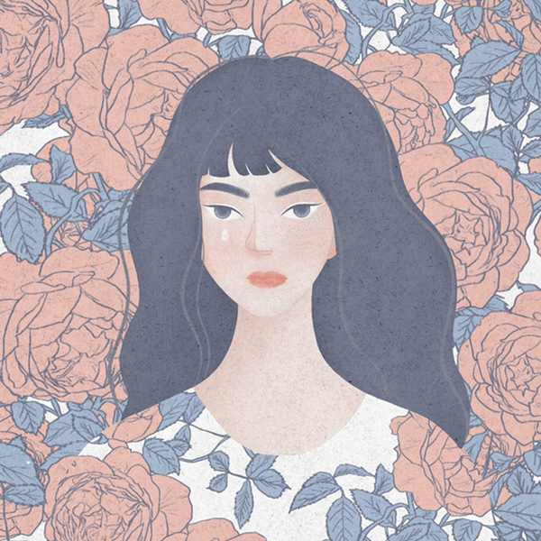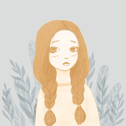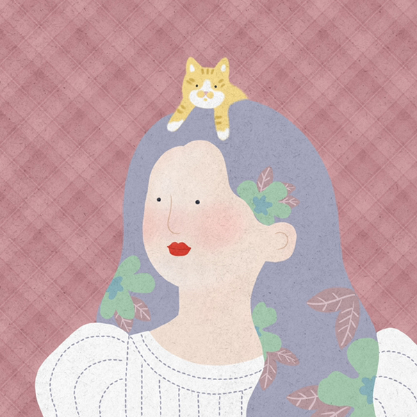 紫色调手绘女孩 植物花卉手绘 少女插画包装素材