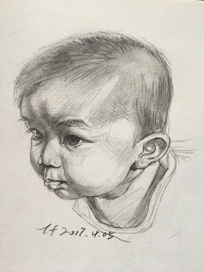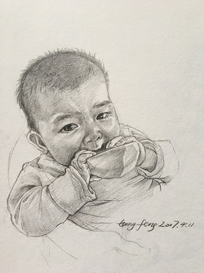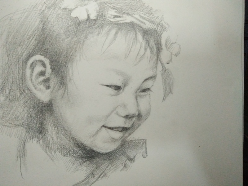 女儿三岁了,画个素描庆祝一下。十多年没动笔,希望大家抱以鼓励的心态来看。