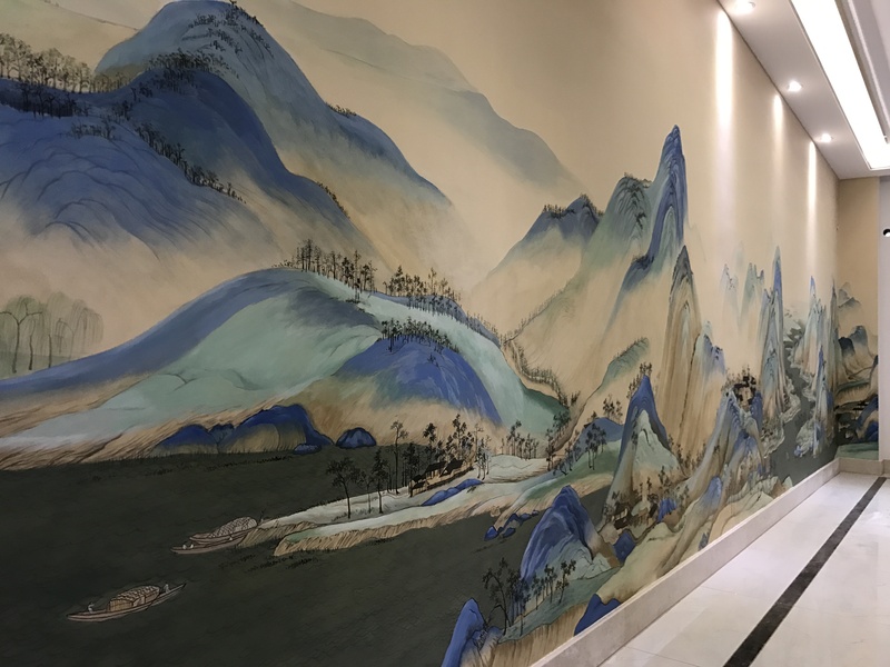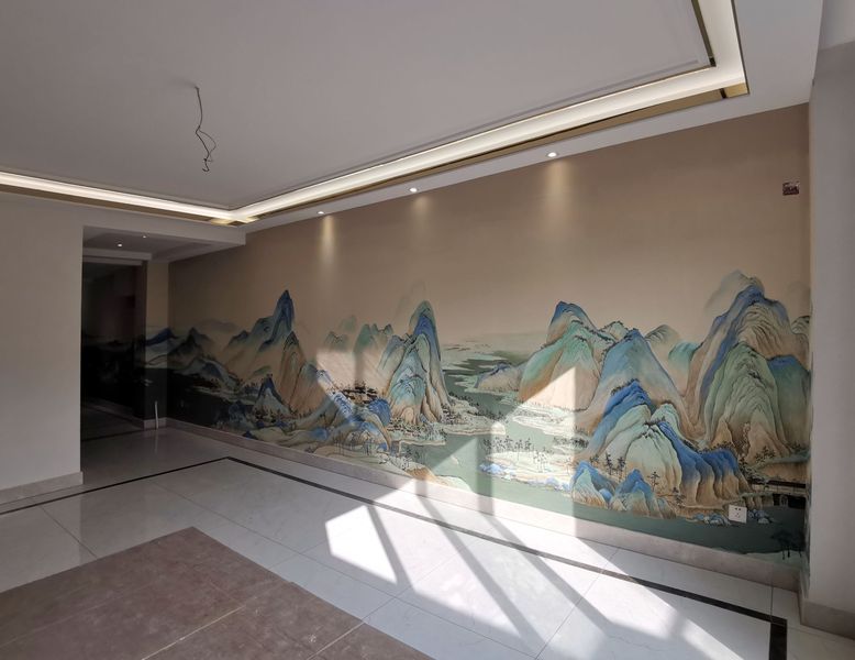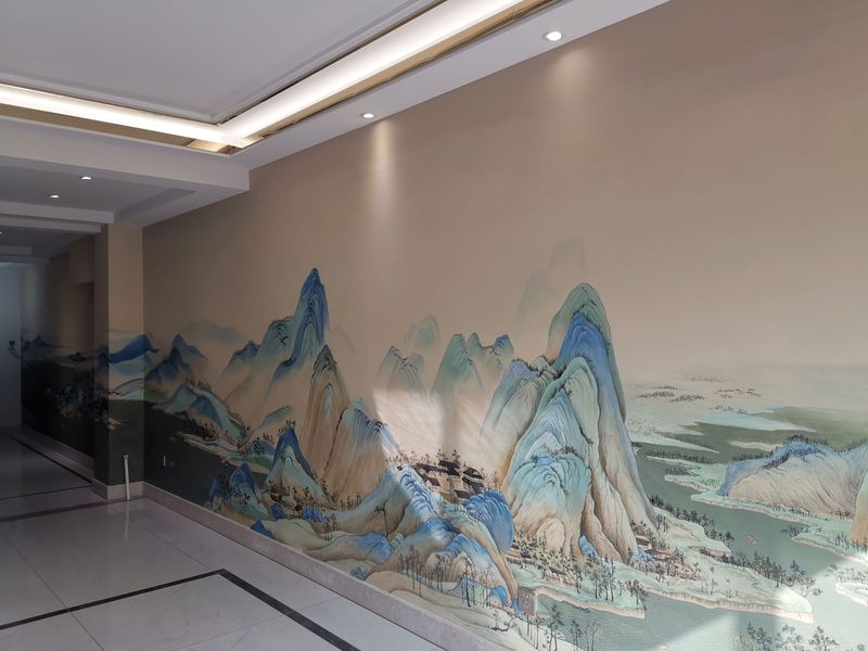 南京墙绘壁画—千里江山图,墙体彩绘,新中式山水画。