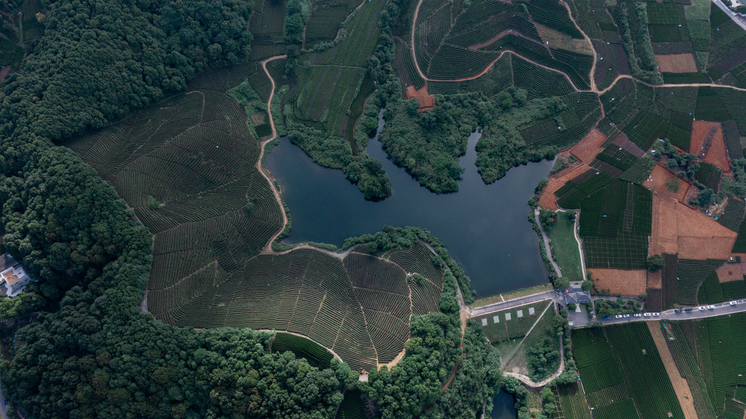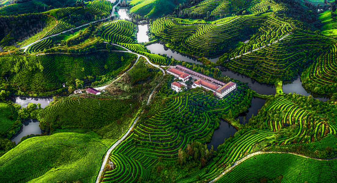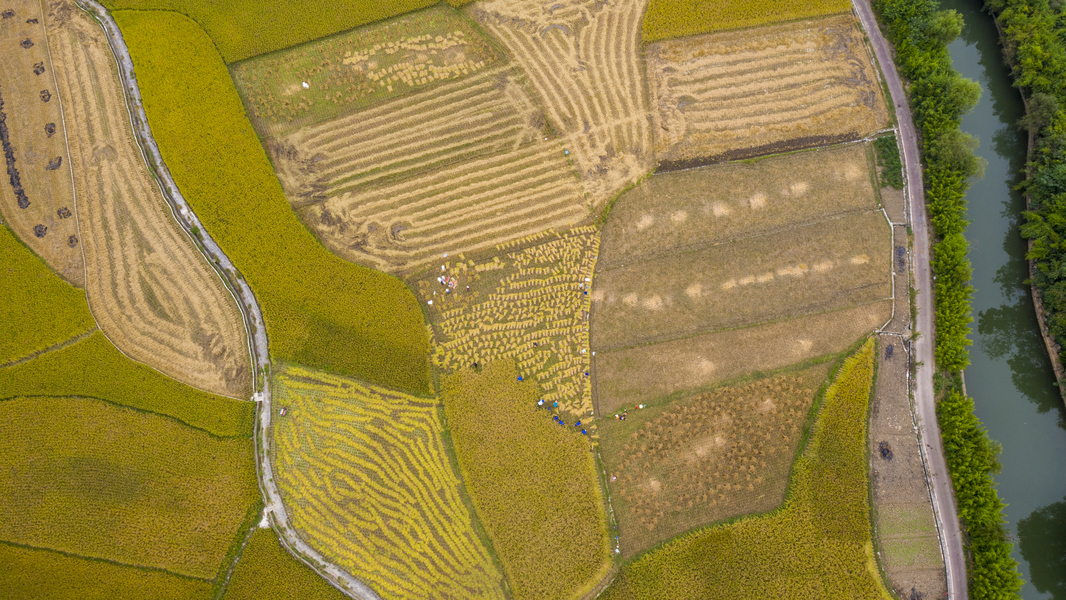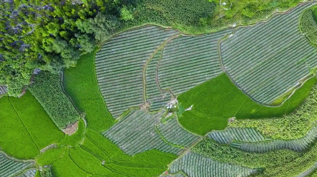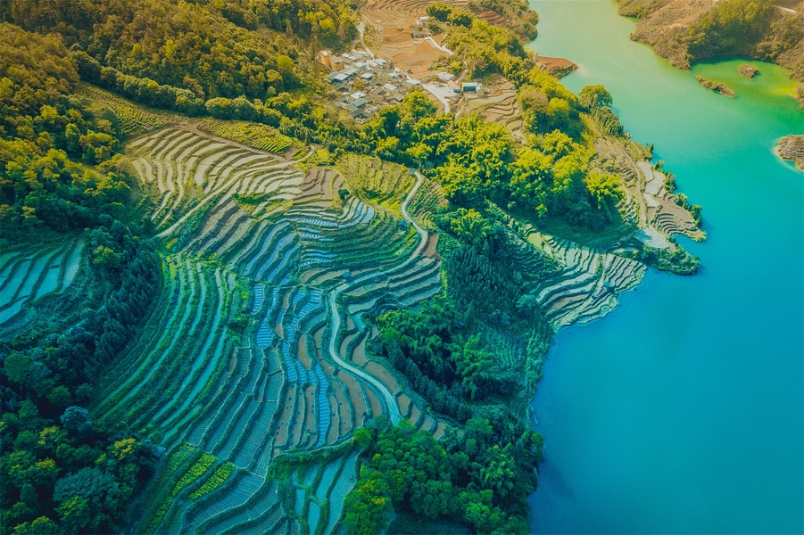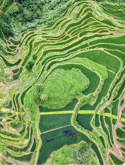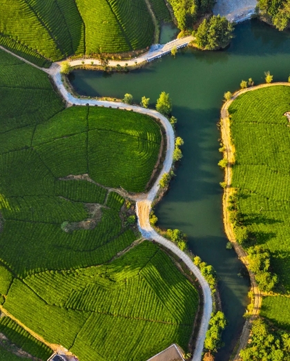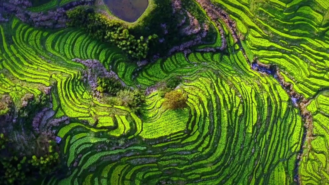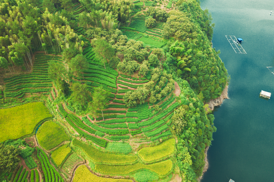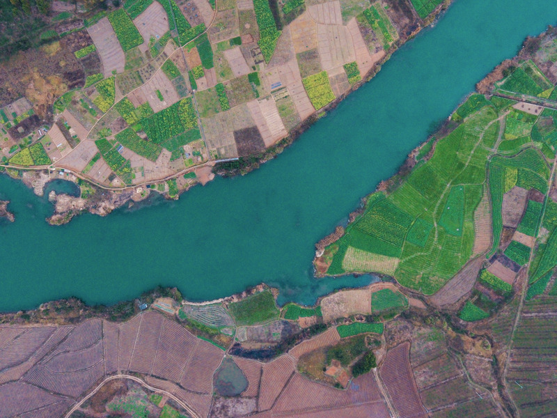 一幅色彩浓重的油画在你低头俯瞰江边农田时即刻诞生