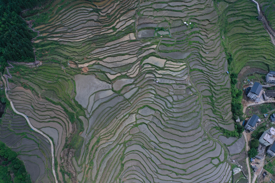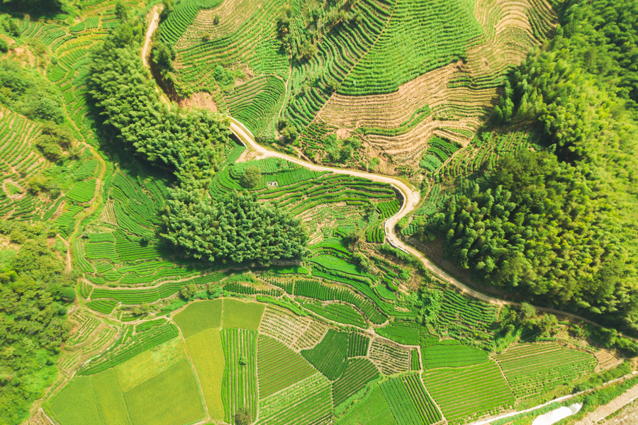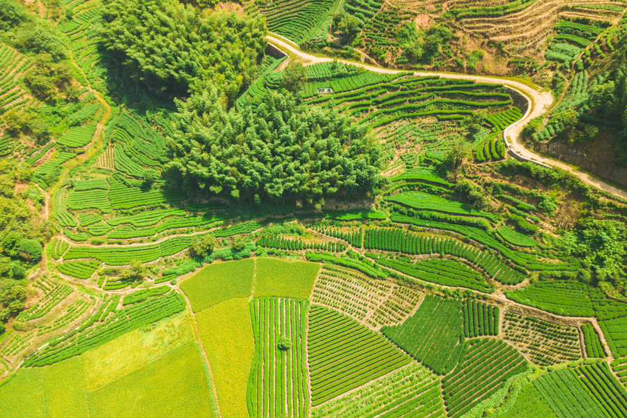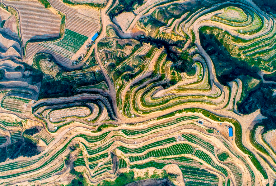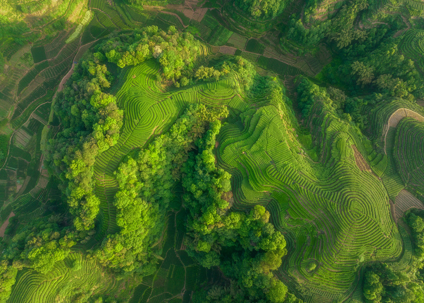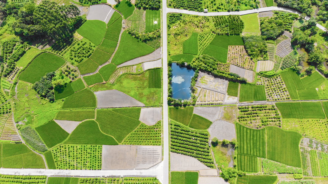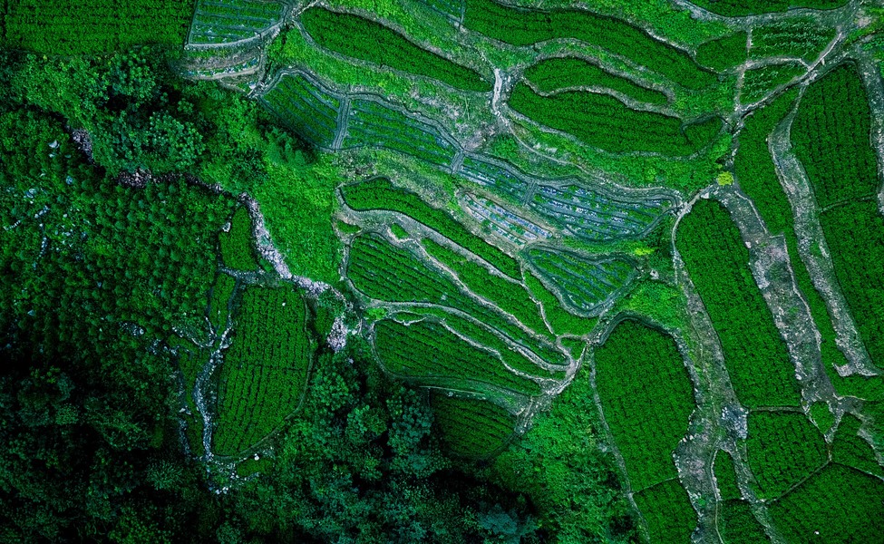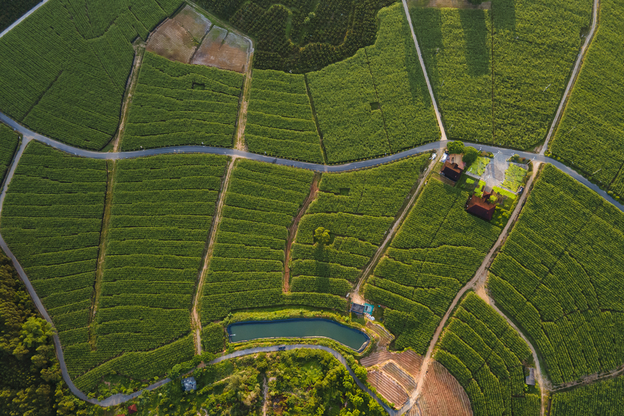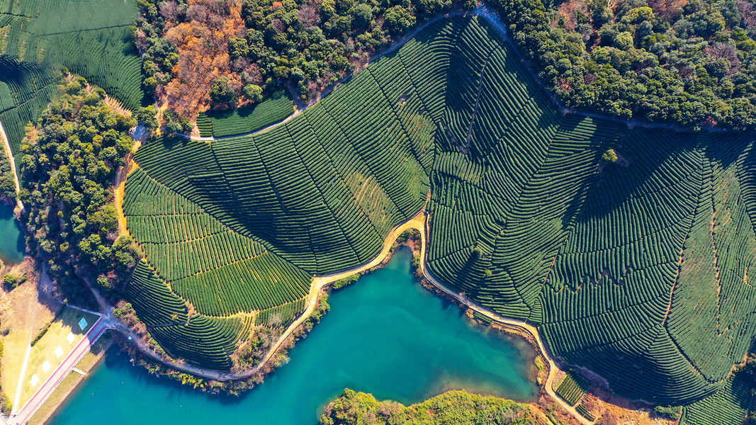 一幅色彩浓重的油画在你低头俯瞰江边农田时即刻诞生