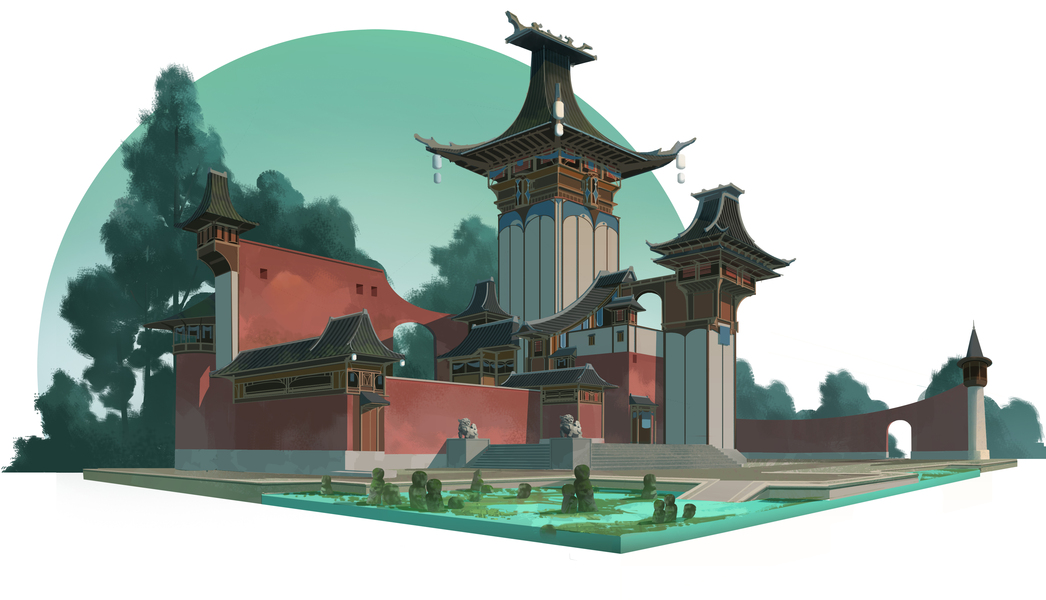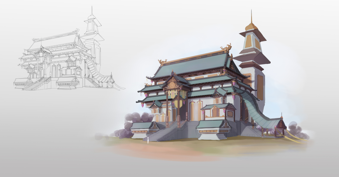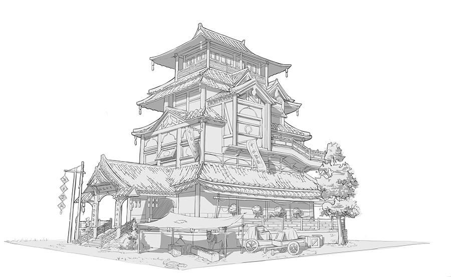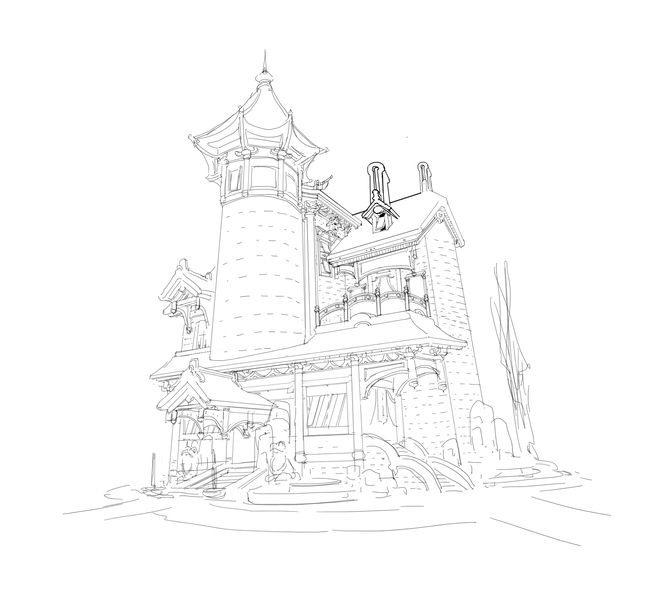 艺数绘讲师洛克猴(杜震)中国风建筑课堂范画